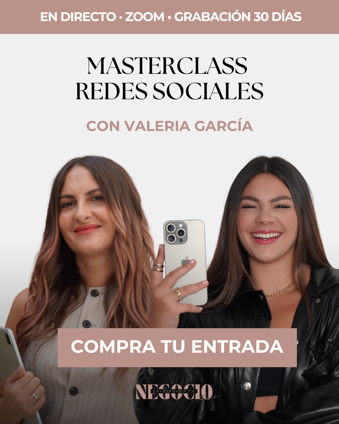 Esta masterclass es privada y forma parte del programa Transforma tu Negocio Pro. Abrimos el acceso individual de forma puntual y exclusiva para profesionales externas que quieran entender cómo usar sus redes sociales con criterio y estrategia.